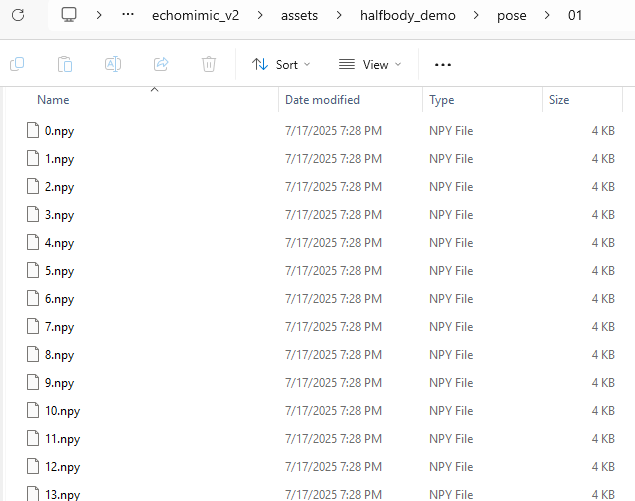 ) and are then passed into the Pose Encoder. Each npy file contains information of one frame.